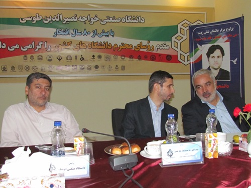 چهارمين نشست مسئولين دانشگاه هاي بزرگ كشور به ميزباني دانشگاه خواجه نصير با حضور دكتر شجاعي فرد از وزارت علوم تحقيقات و فناوري و حجت الاسلام والمسلمين ابوترابي فرد نايب رييس مجلس شوراي اسلامي روز 2شنبه 27/6/91 برگزار شد.