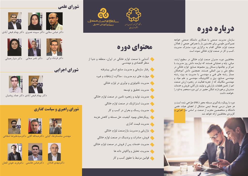 نصیرالدین طوسی و سازمان مدیریت صنعتی، طراحی و برگزاری دوره های مدیریت اجرایی و