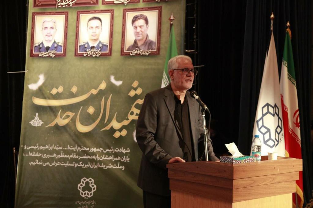 دکتر شاهانی، رئیس دانشگاه ضمن عرض تسلیت به مناسبت شهادت رئیس جمهور شهید و هیأت همراهشان با اشاره به آیه‌ای از قرآن کریم گفت: اساس عمل ایشان اخلاص و صداقت بود، از هوای نفس، حب مقام و ریاست به دور بود معمولاً حاکمان گاهی برای مصلحتی، مطلبی بر خلاف واقع اظهار می‌دارند، اما او هرگز از این روش استفاده نکرد بلکه از سلاح نافذ و برنده اخلاص و صداقت استفاده کرد و او صادقانه وارد ریاست جمهوری شد و صادقانه خارج شد.