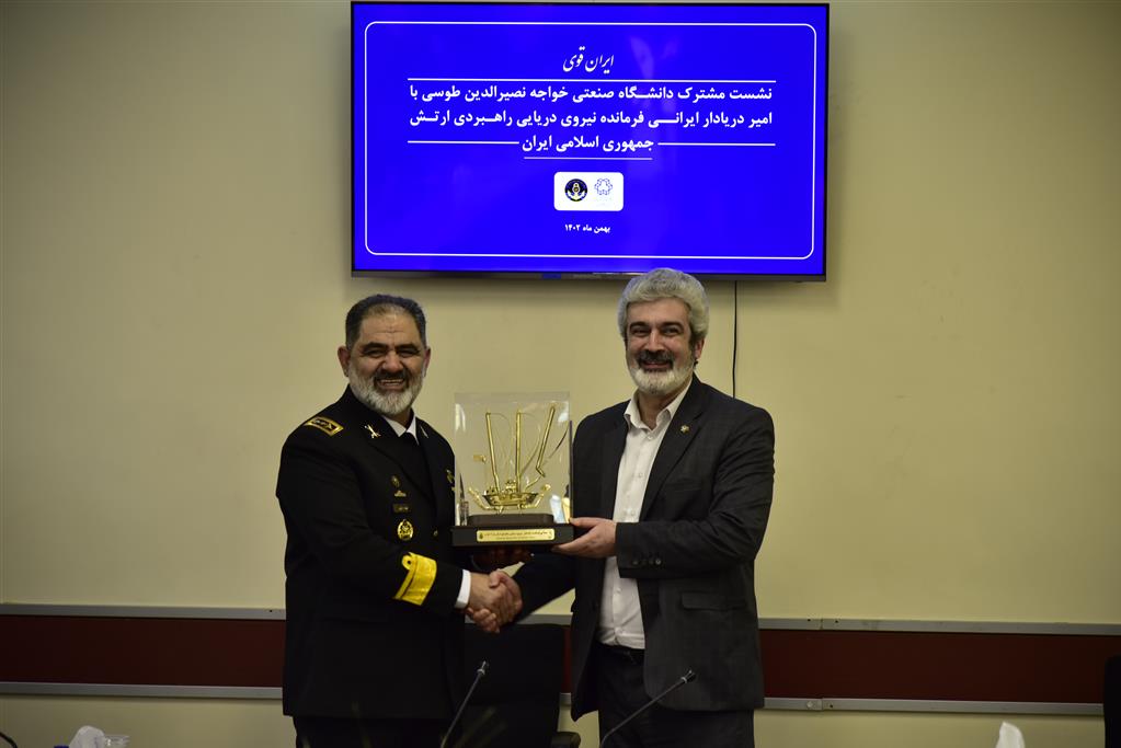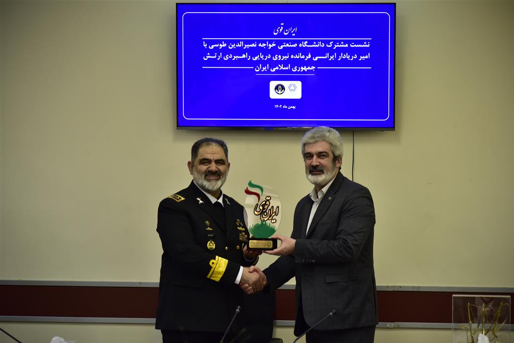 تفاهم‌نامه همکاری علمی، آموزشی و پژوهشی بین نیروی دریایی ارتش و دانشگاه صنعتی خواجه نصیرالدین طوسی به‌ منظور تقویت و گسترش همکاری و تعامل نداجا با این دانشگاه به امضای امیر دریادار ایرانی فرمانده نیروی دریایی ارتش و دکتر شاهانی رئیس دانشگاه صنعتی خواجه نصیرالدین طوسی رسید.