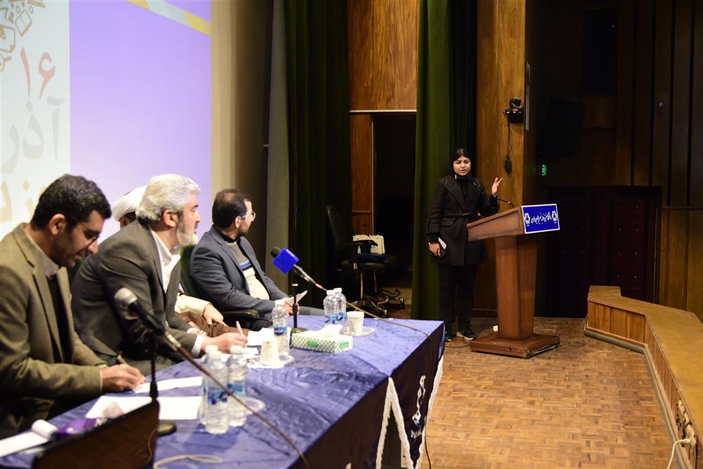 در ادامه مراسم نوبت به نماینده بسیج دانشجویی دانشگاه رسید تا به طرح سوالات و دغدغه‌های خود بپردازد.