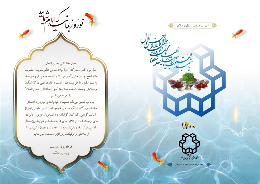پیام تبریک رئیس دانشگاه صنعتی خواجه نصیرالدین طوسی به مناسبت عید باستانی نوروز