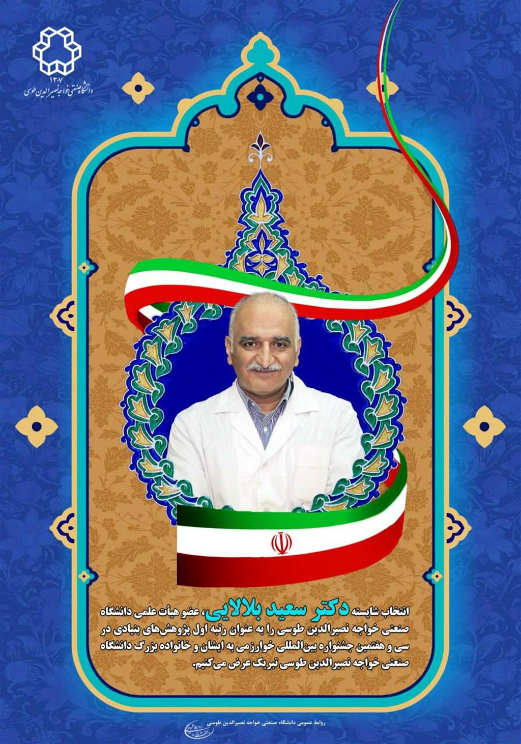 کسب موفقیت دکتر بلالایی، در سی و هفتمین جشنواره بین المللی خوارزمی