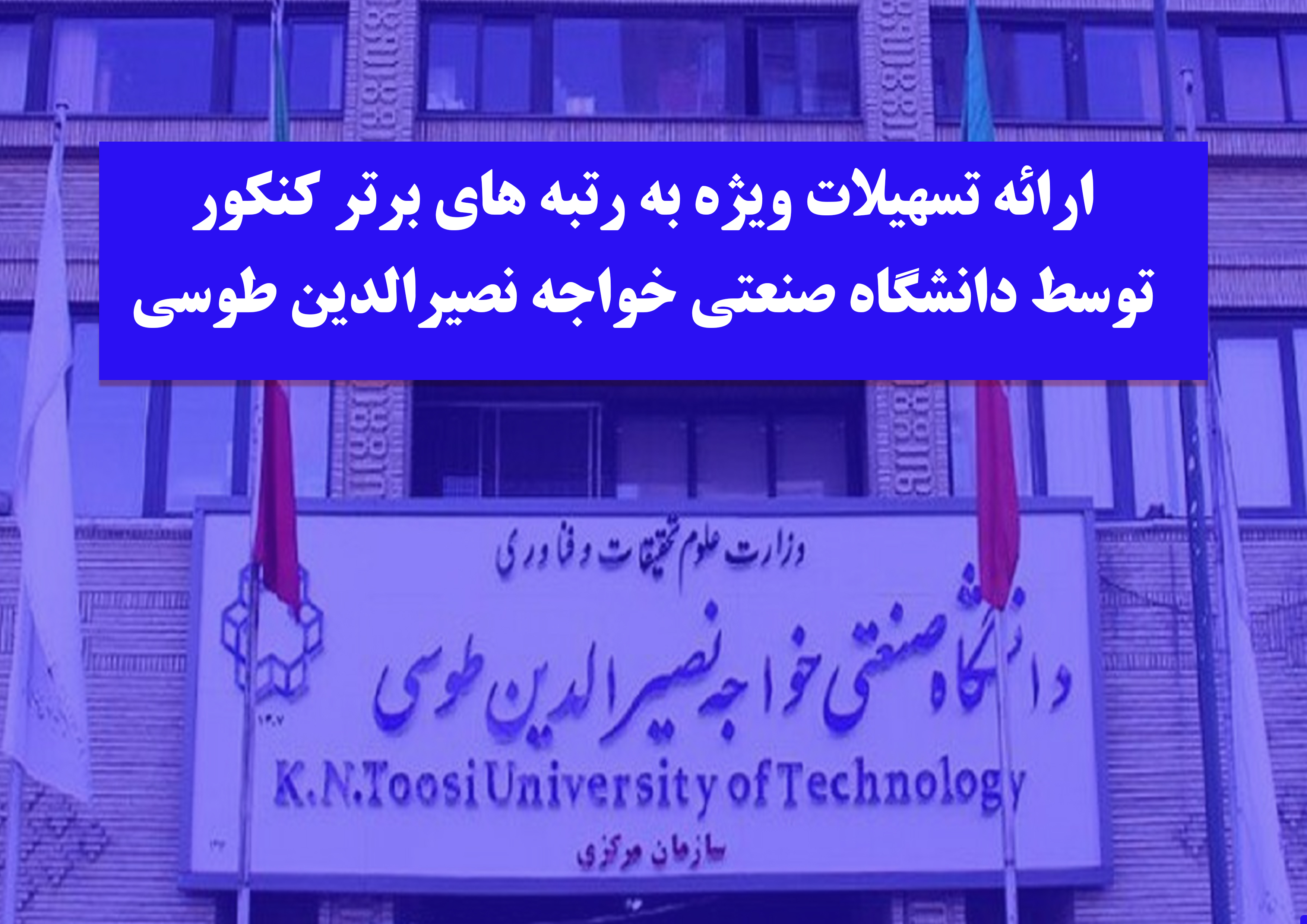دانشگاه صنعتی خواجه نصیرالدین طوسی برای رتبه های برتر کنکور تسهیلات ویژه ای ارائه خواهد کرد.