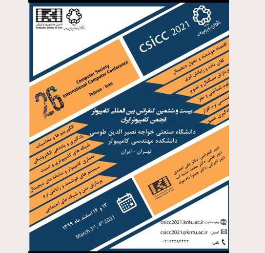 بیست و ششمین کنفرانس بین المللی کامپیوتر ایران امسال توسط دانشکده مهندسی کامپیوتر دانشگاه صنعتی خواجه نصیرالدین طوسی و با همکاری انجمن کامپیوتر ایران در تاریخ 13 و 14 اسفند‌ماه بصورت آنلاین برگزار خواهد شد.