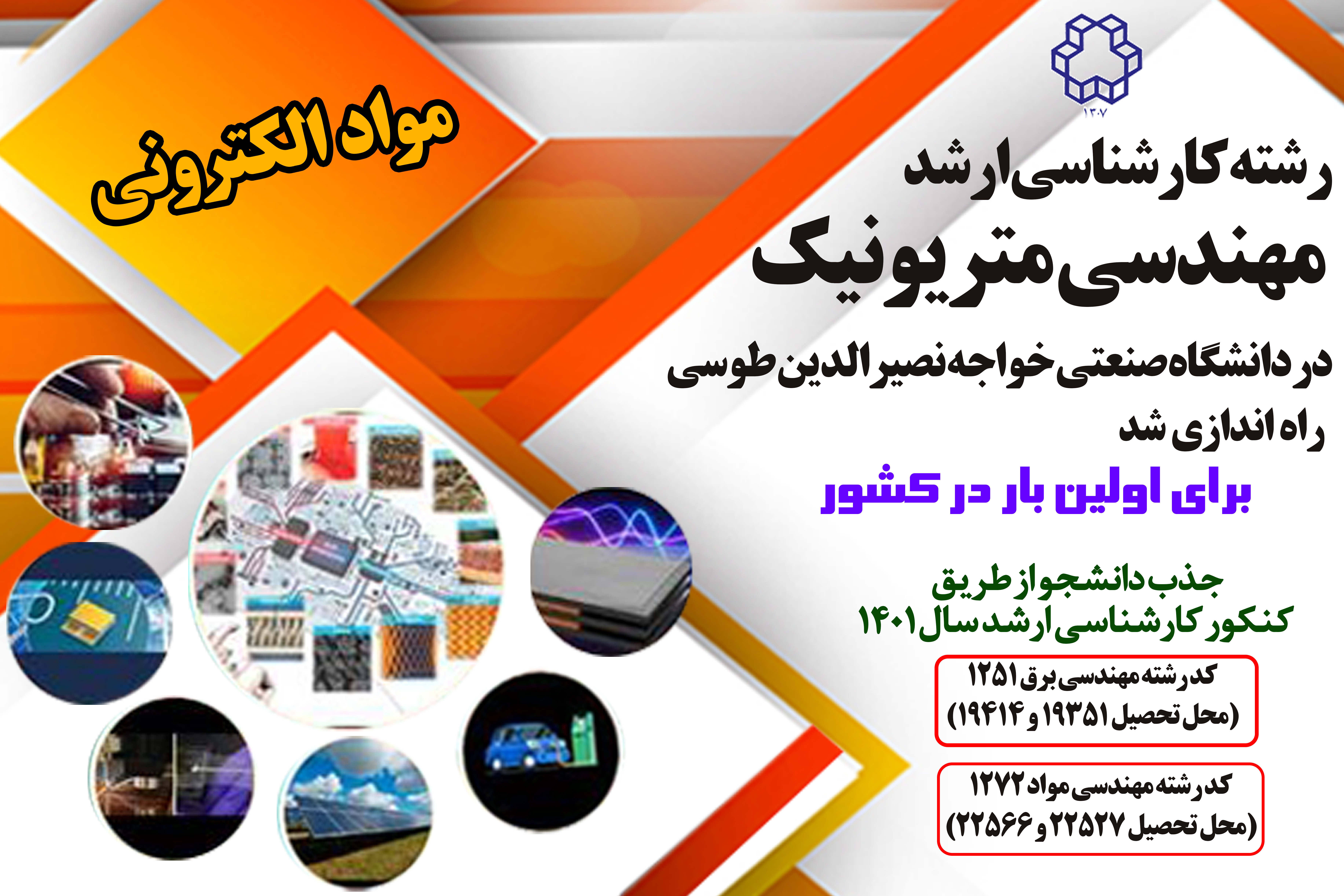 به گزارش روابط عمومی دانشگاه؛ گرایش کارشناسی ارشد مهندسی متریونیک (مواد الکترونی) برای اولین بار در کشور توسط دانشگاه صنعتی خواجه نصیر الدین طوسی ارائه شده است که دروس و پژوهش به طور مشترک توسط دانشکده های مهندسی برق و مواد ارائه خواهد شد