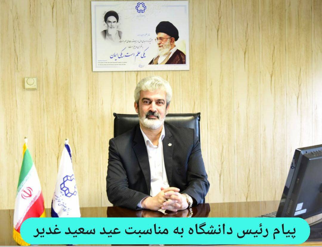 به گزارش روابط عمومی دانشگاه؛ دکتر امیررضا شاهانی، رئیس دانشگاه به مناسبت عید سعید غدیر خم پیام ذیل را صادر نمود: