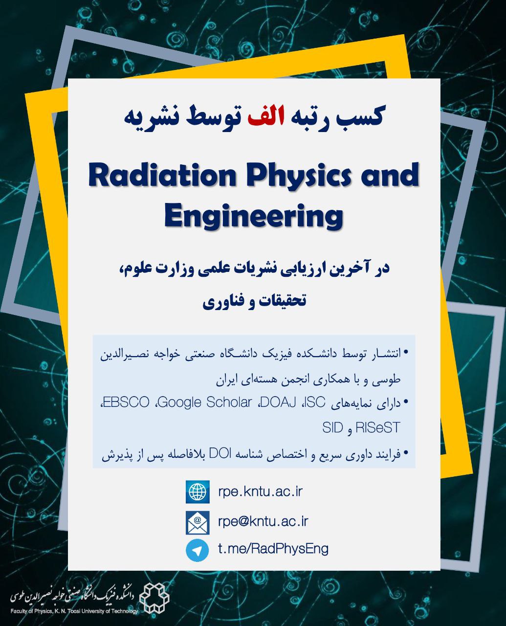 به گزارش روابط عمومی؛ نشریه Radiation Physics and Engineering (RPE) با صاحب امتیازی دانشگاه صنعتی خواجه نصیرالدین طوسی و مجوز انتشار از وزارت فرهنگ وارشاد اسلامی، توسط دانشکده فیزیک این دانشگاه منتشر میشود.