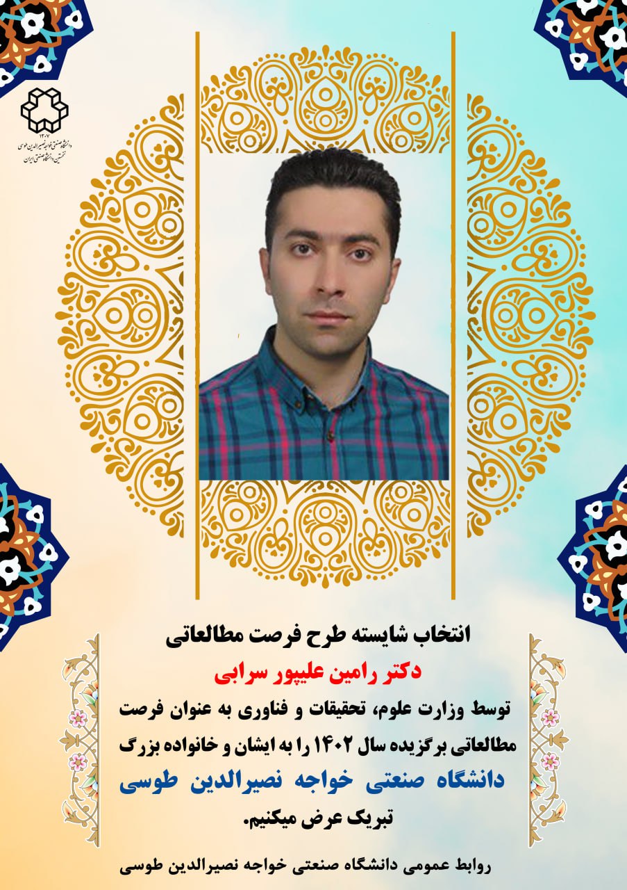 انتخاب شایسته طرح فرصت مطالعاتی دکتر رامین علیپور سرابی توسط وزارت علوم، تحقیقات و فناوری به عنوان فرصت مطالعاتی برگزیده سال 1402